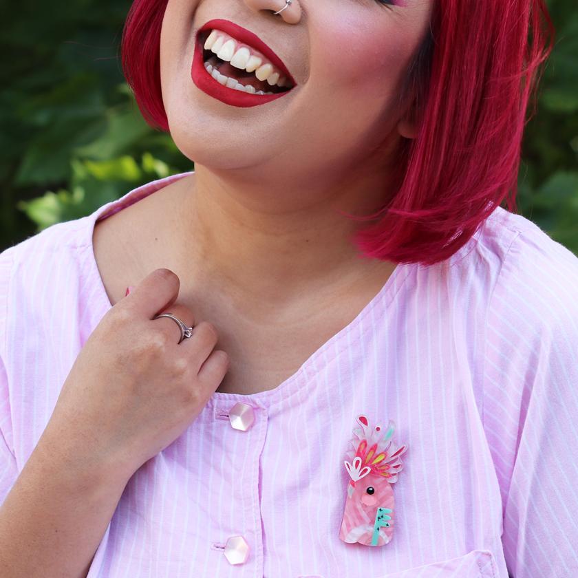 Erstwilder "The Mirthful Major Mitchell" Cockatoo Brooch Designed in Melbourne, Australia
